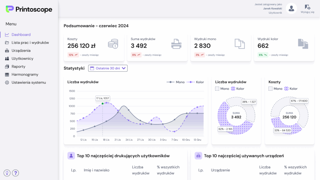 Od 2011 roku znacząco zwiększyliśmy zespół programistów, co umożliwiło wdrożenie nowoczesnych technologii oraz intensywny rozwój systemu. Efektem tych działań była premiera nowej wersji Printoscope w 2024 roku – stabilnej, bezpiecznej i wyposażonej w nowoczesny interfejs dla użytkownika.