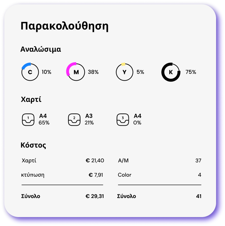 Υπολογισμός κόστους: Ακριβής χρέωση κάθε εκτύπωσης και χρήστη.