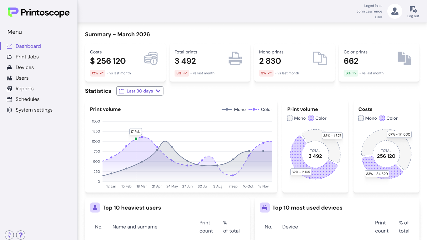 Implementing the Printoscope system allowed us to fully take control of the printing environment and replace assumptions with hard data. Thanks to automatic cost control and spending limits, we genuinely reduced operational costs, while gaining unprecedented budget predictability and full transparency of every print job.