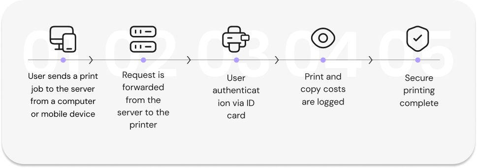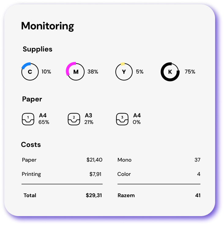 One system, a complete solution for your office – from secure follow-me printing, through cost analytics, to remote fleet management – all at your fingertips.